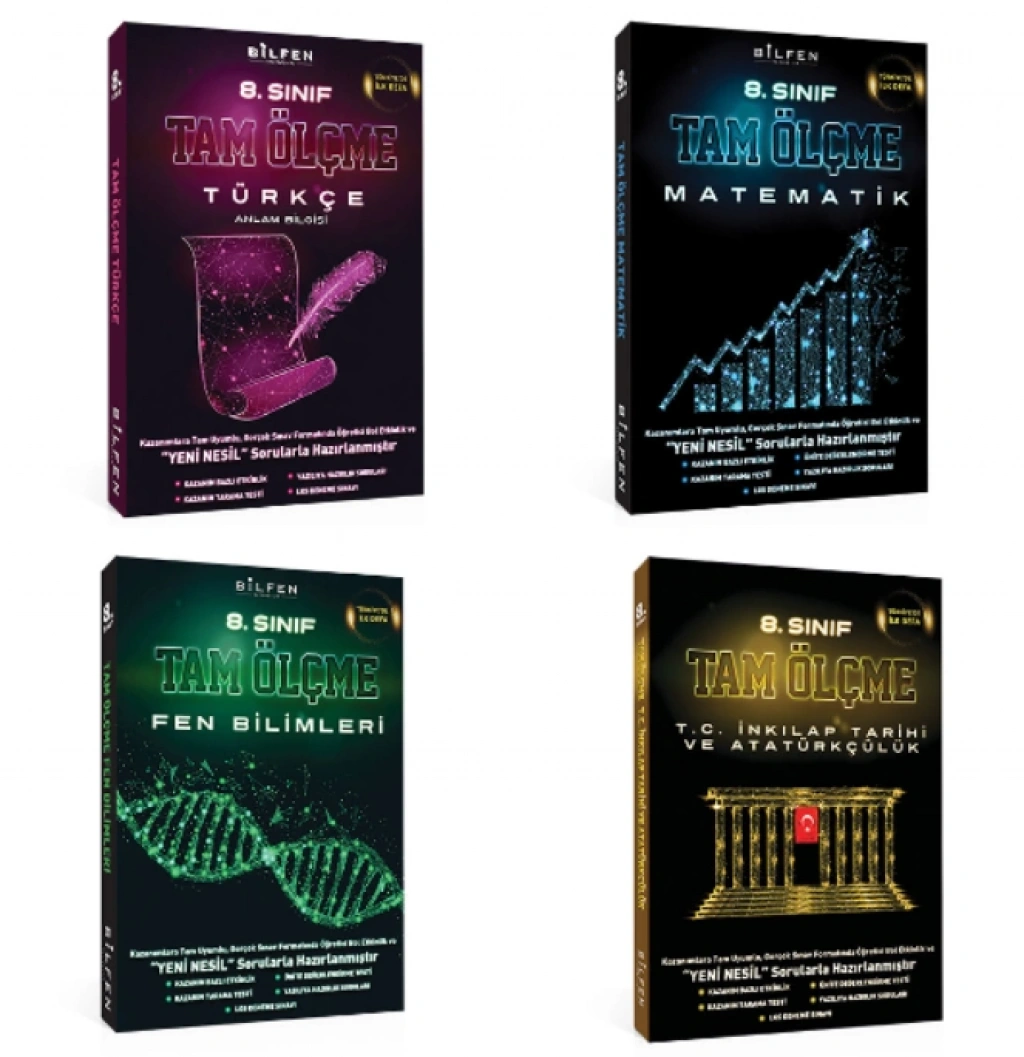 BİLFEN 8. Sınıf Tam Ölçme Türkçe - Matematik - Fen Bilimleri ve İnkilap Soru Bankası (4 Kitap)