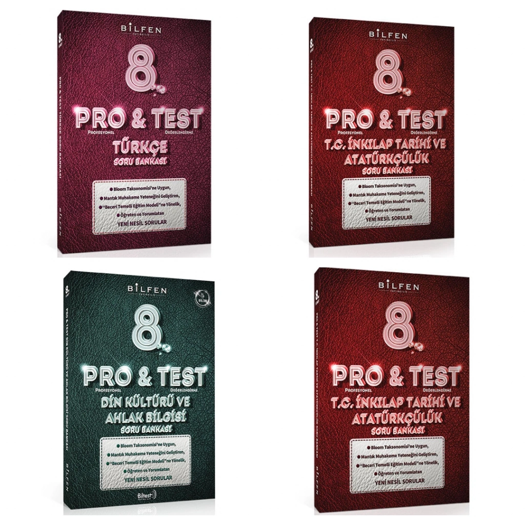 BİLFEN PRO&TEST 8. Sınıf Türkçe - İnkilap - Din - İngilizce Soru Bankası (4 Kitap)