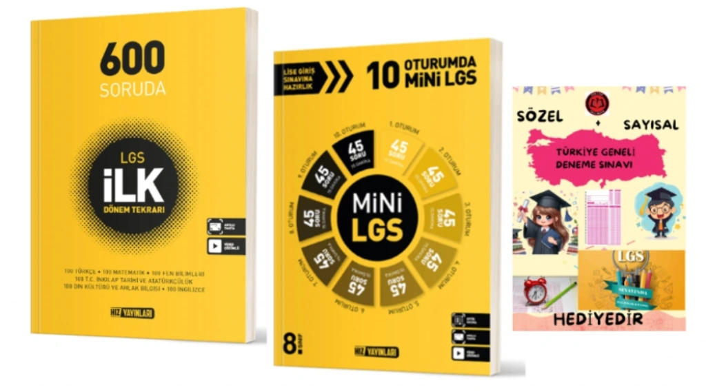 HIZ YAYINLARI 8.SINIF 600 SORUDA LGS İLK DÖNEM TEKRARI ve 10 OTURUMDA MİNİ LGS - Hediye